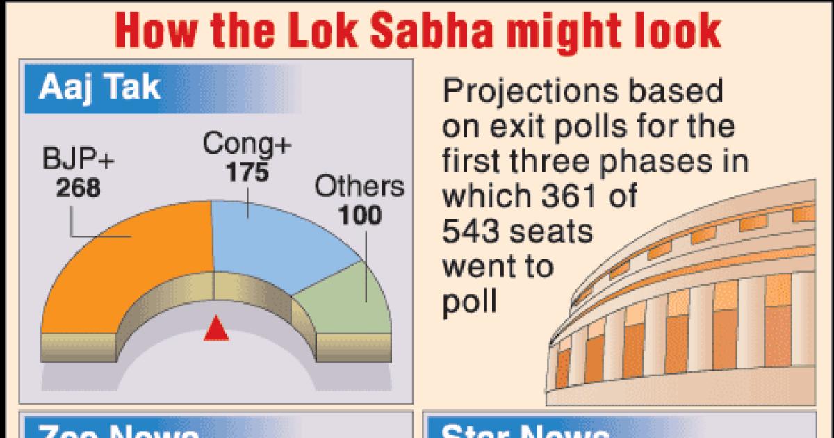 The Zee-Taleem exit poll, which covered the Hindi belt states and interviewed up to 40,000 voters, gave the NDA 44 seats, Congress and Allies 14, and 20 to Others.