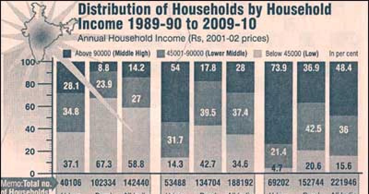 Absent a political or financial crisis, there seems to be no inherent reason why this process will not continue. In 1998, the NCAER attempted to project the evolution of households by income class, based on assumed sectoral growth rates.