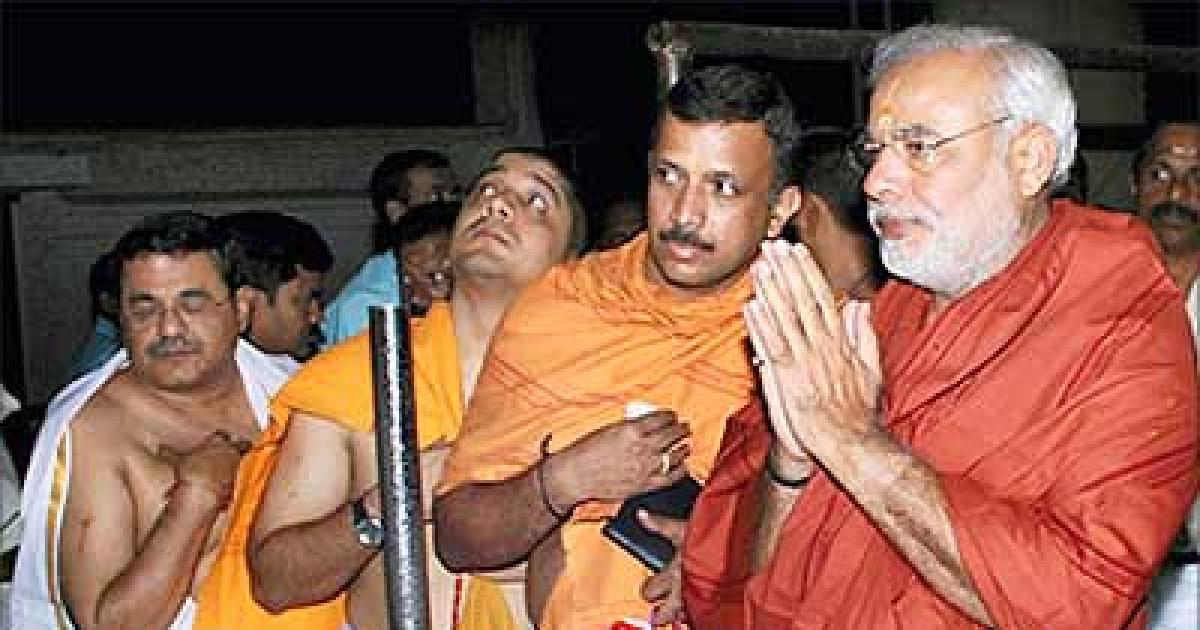 Gujarat Chief Minister Narendra Modi offered prayers at the famed Guruvayur Sree Krishna Temple at Guruvayur in Kerala on Monday.
