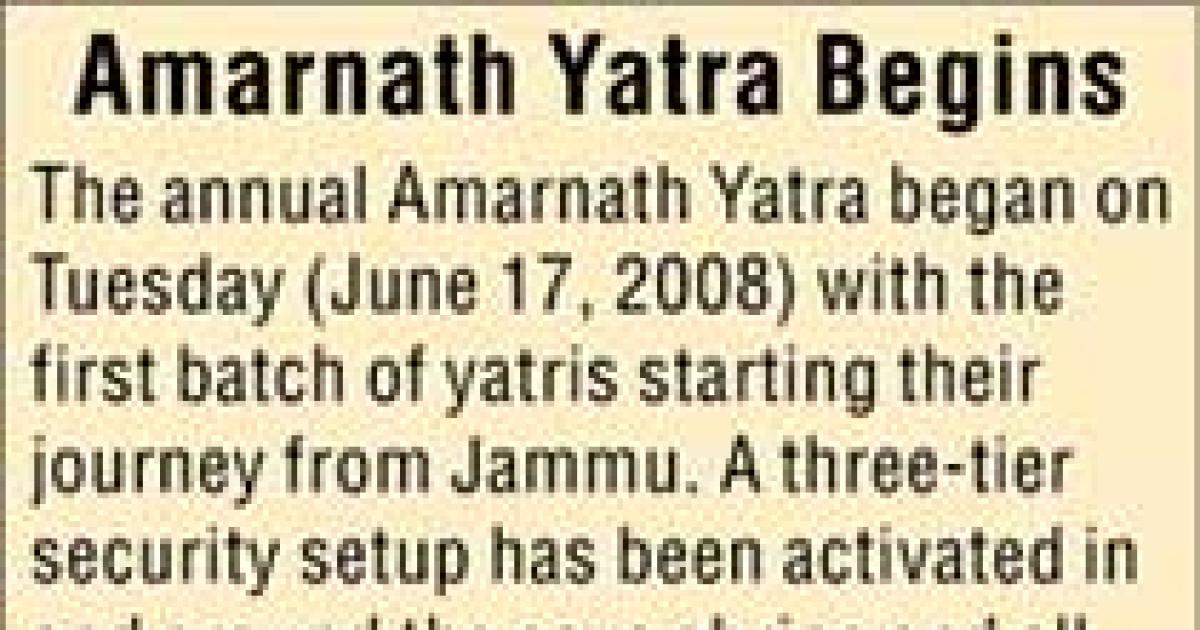 Amid chanting of religious hymns and tolling of bells, the annual Amarnath Yatra began on Tuesday with the first batch of 2,837 pilgrims starting their journey from Jammu to the cave shrine in south Kashmir, protected by a three-tier security ring.