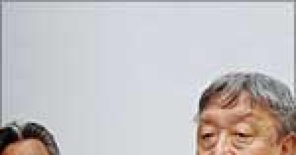 Image: Envoys of His Holiness the Dalai Lama Lodi Gyari (R) and Kelsang Gyaltsen address a press conference in Dharamsala , after their return from talks with Chinese authorities in Shenzen.
