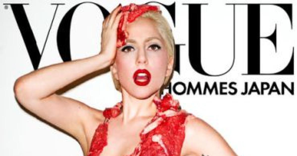 Pop star Lady Gaga has angered animal rights activists after appearing on the cover of the September issue of Men's Vogue Japan clad in a bikini made of raw meat.