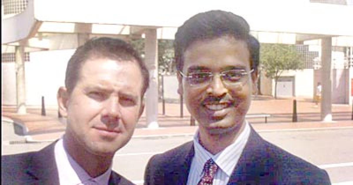 'Here's a photograph of my brother-in-law, Vasudeva Rao, with the Australian captain Ricky Ponting. Ricky was addressing a session on leadership for Citibankers in Sydney, Australia where Vasu was a participant,' writes Praveen.