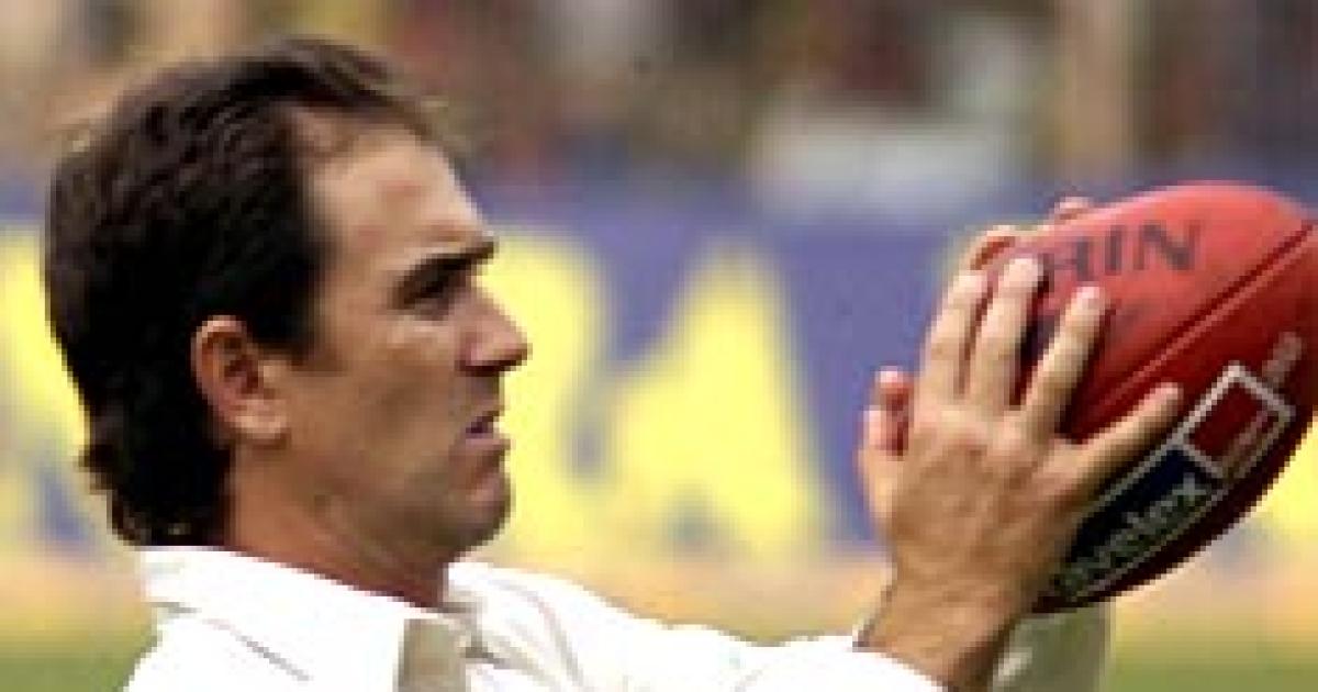 A little before cricket could resume for the second time after the rain delay, Justin Langer kicked a red Australian football about with some cameramen.