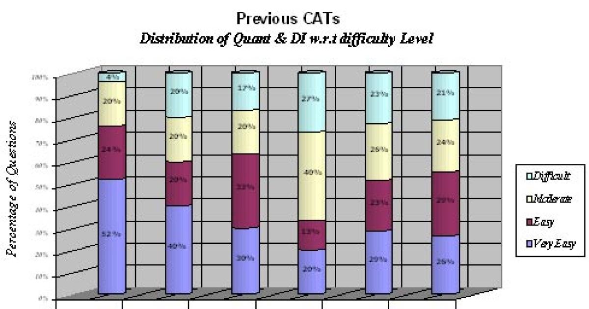 While analyzisg the past CAT papers, one can easily find half of the questions, which were either tricky or lengthy. A further division into moderate, easier, very easier can be made by analyzing the question statements. Experts at TCY have categorised the questions of last 3 CATs into 'very easy', 'easy', 'moderate' and 'difficult' on the following basis:
