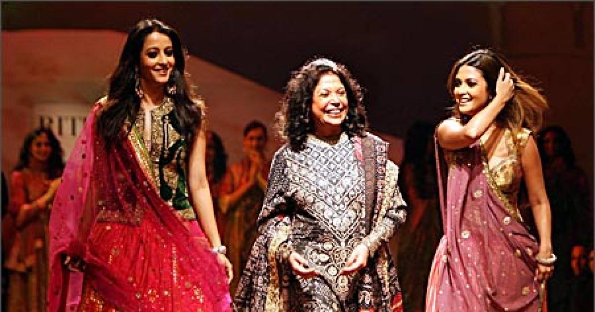 Vying for attention, apart from the gorgeous designs, were actresses Priyanka Chopra and Neha Dhupia sashaying down the ramp in breath-taking ensembles. Seen here is Ritu Kumar (centre) accompanied by actress sisters Riya (R) and Raima Sen.