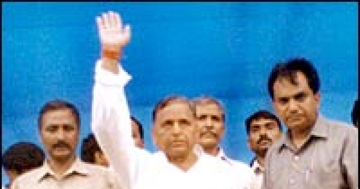 Yadav arrived at the venue in a long carcade, which included many open vehicles carrying his well-wishers. He was accompanied by party colleagues Amar Singh and Raj Babbar, RLD leader Ajit Singh, RKP leader Kalyan Singh and Congress leaders Jagdambika Pal and Pramod Tiwari.
