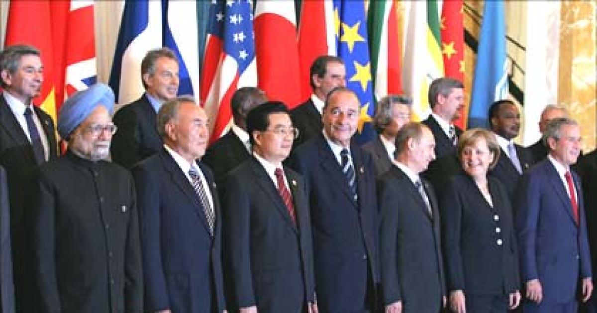 The eight industrialised powerhouses invited their counterparts from five key emerging market economies -- Brazil, China, India, Mexico and South Africa -- to join the third and final day of their annual summit.