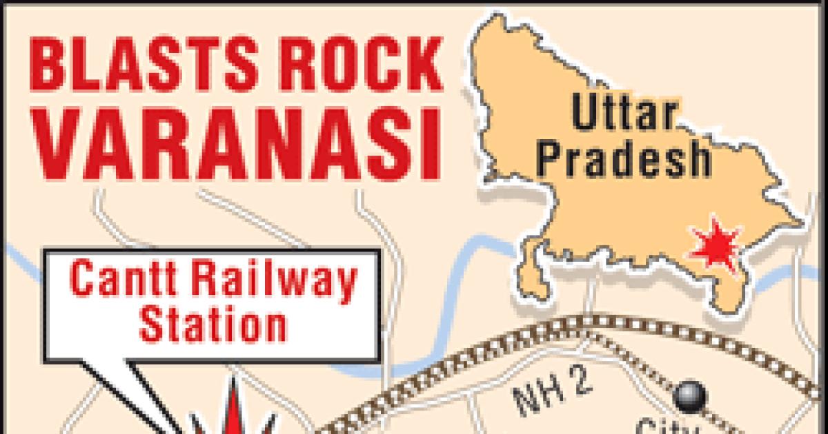 A similar explosion in the waiting area of the Varanasi railway station followed the temple blast. A bomb went off outside the station master's room at the railway station, leaving five dead and about 20 injured.