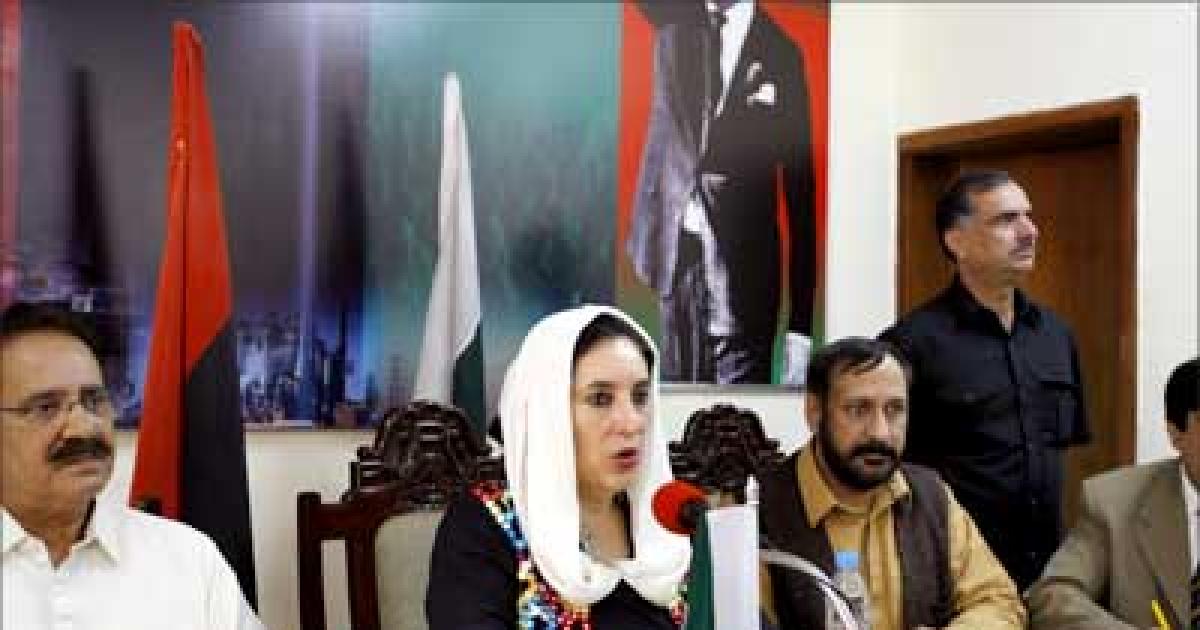 Former Pakistani Prime Minister Benazir Bhutto, attends a meeting with members of the Alliance to Restore Democracy at the Pakistan People's Party headquarters in Islamabad on November 7.