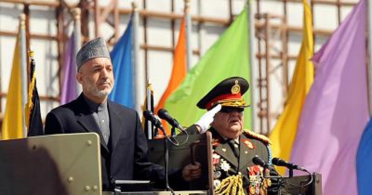 Image: Karzai at the military parade, minutes before the attack.