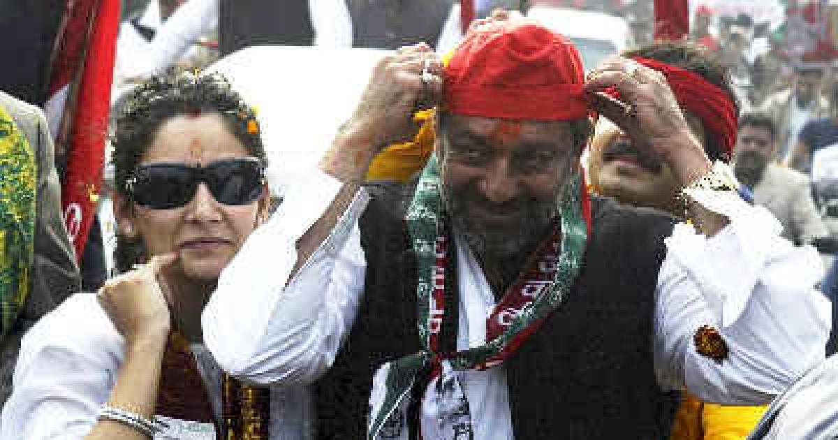 Dutt was flanked by his wife Manyata and fellow actor-turned-SP-politicians including Jaya Prada, Jaya Bachchan and Manoj Tiwari. The SP top brass including president Mulayam Singh Yadav and general secretary Amar Singh were also in attendance.