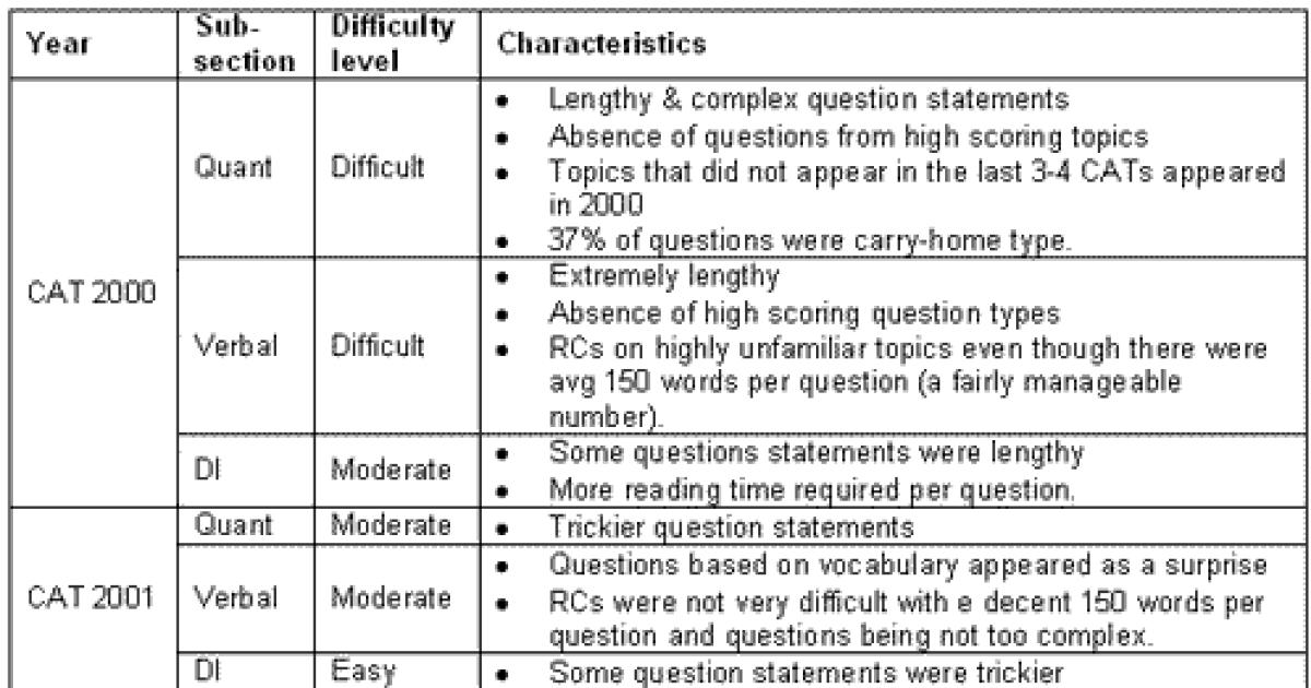 However, it would be wrong to assume that this will be the only surprise in store. MBA aspirants who have prepared themselves with information about past CATs wil find it easier to develop flexible time management strategies, thus eliminating the effects of a changed CAT pattern.