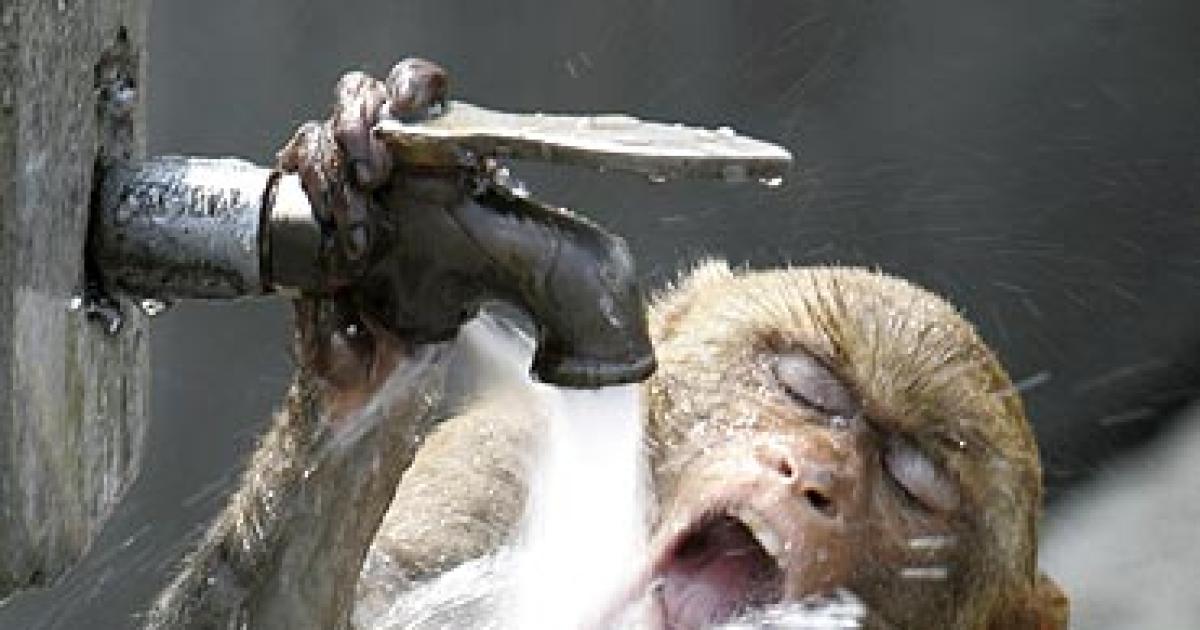 With summer bringing us to a boil, we're seeking a little relief with interesting pics like the one you see here, of a monkey working a tap to steal a drink of water on a sweltering day.