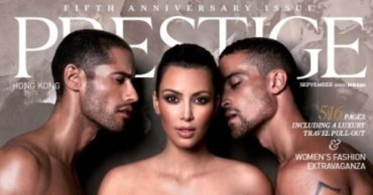 Reality star Kim Kardashian has posed for a steamy pic with two naked men for a magazine, calling it her 'most risque' cover till date.