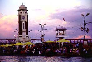 his clock tower -- maintained by the Birlas, the leading Indian business house -- is something of an oddity at the Hari-ki-Pairi